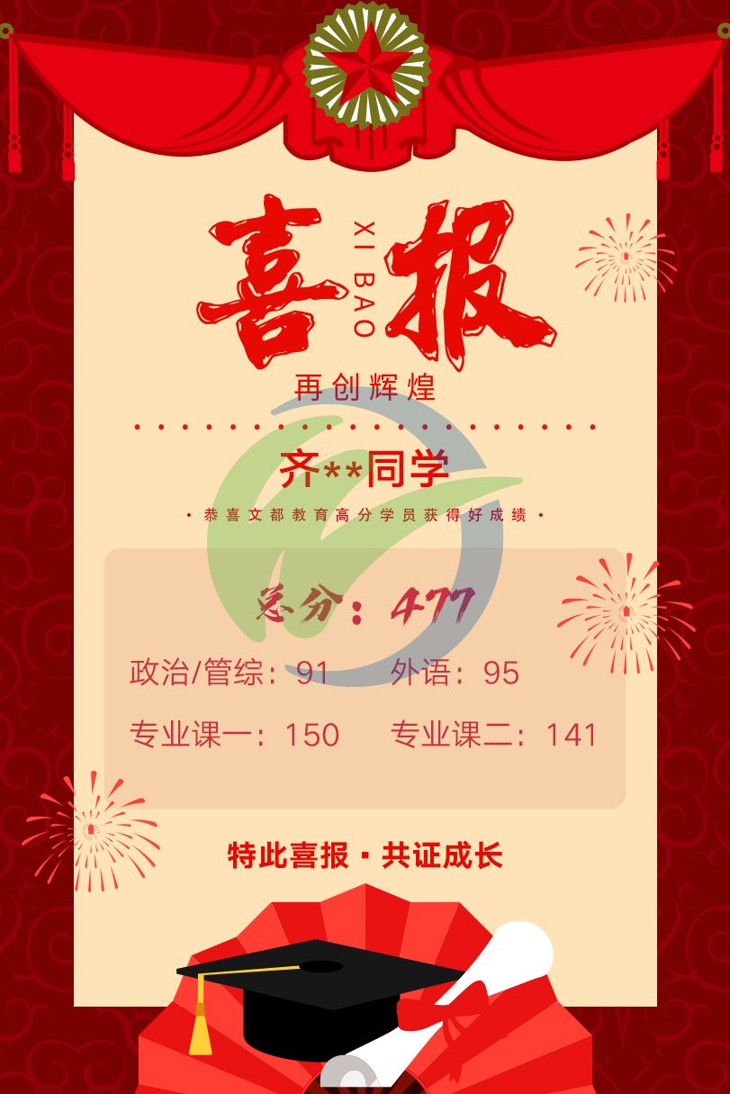 文都高分學子初試捷報——477分