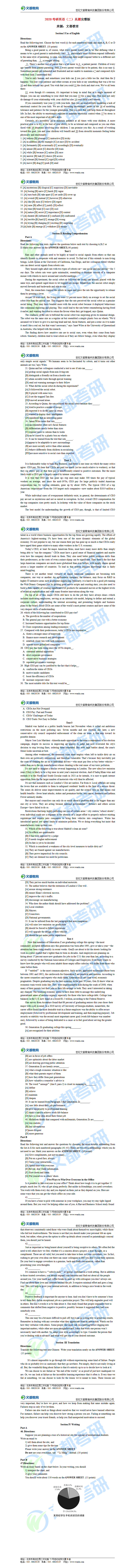 上面就是給大家整理的2020考研英語(二)真題完整版的相關內容,如有更多疑問,請及時咨詢在線老師。